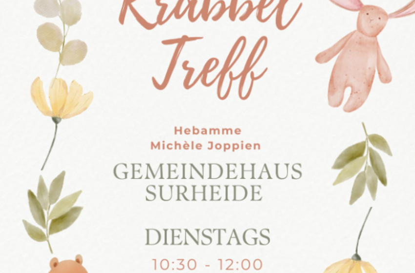 Ohne Voranmeldungen sind Eltern mit Babys bis zu einem Jahr zu unserem neuen Krabbeltreff im Gemeindehaus eingeladen.
