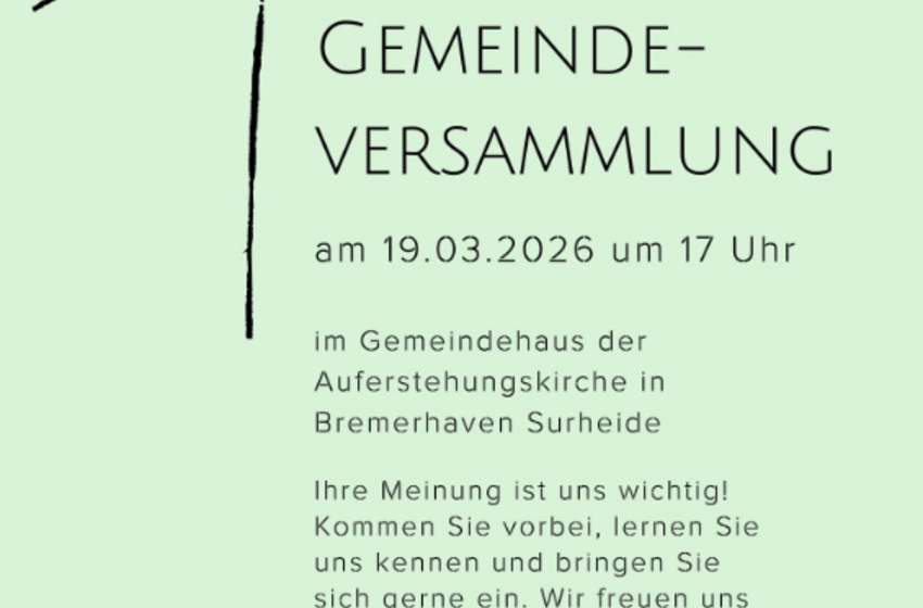 Der Kirchenvorstand lädt alle Interessierte zur nächsten Gemeindeversammlung ein. Wir freuen uns auf eine rege Beteiligung