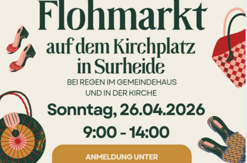 Auch im Frühjahr ist wieder Flohmarktzeit rund um die Kirche. Bei schlechtem Wetter gehen wir kurzfristig in die Kirche und in das Gemeindehaus. Für das leibliche Wohl ist gesorgt.