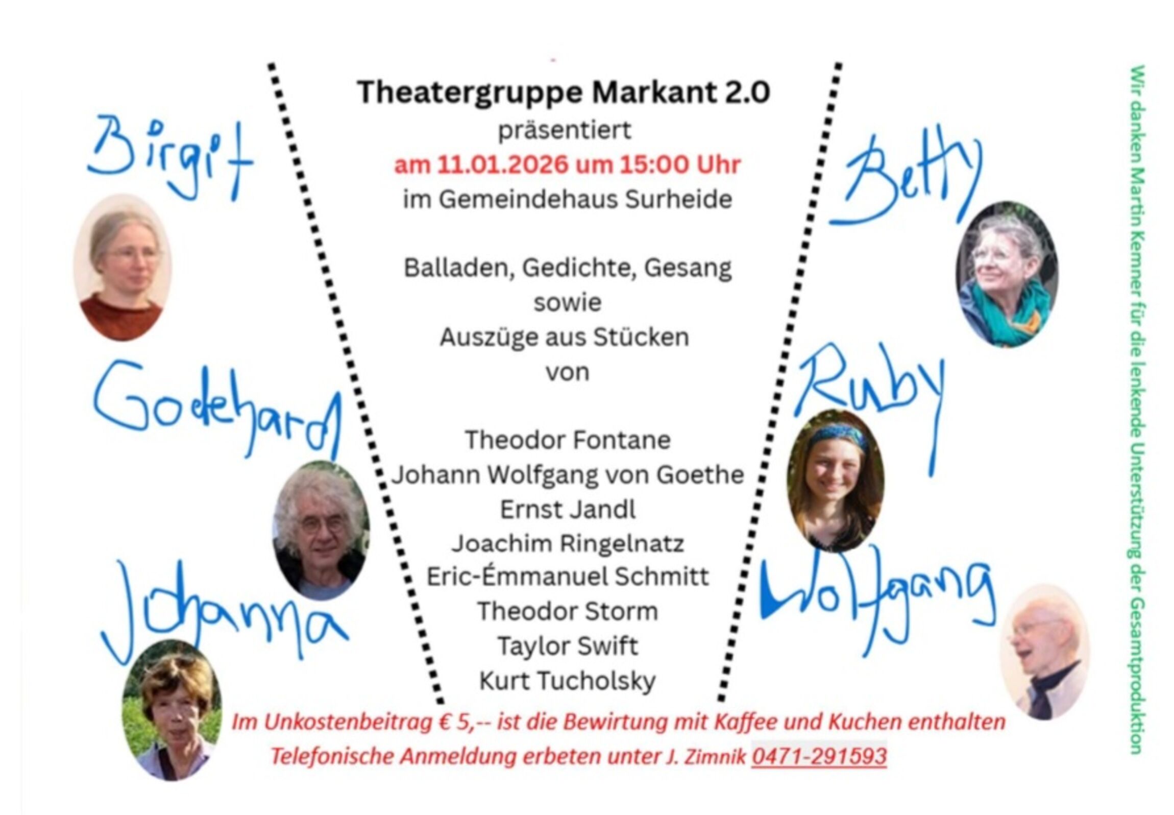 Die Regie hat Martin Kemmner. Wenn jemand Zeit und Lust hat mitzuspielen, ist er herzlich willkommen.