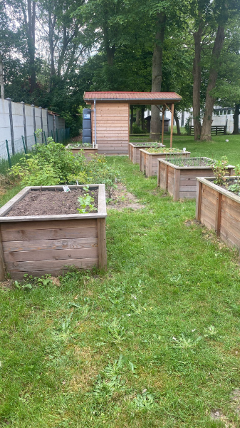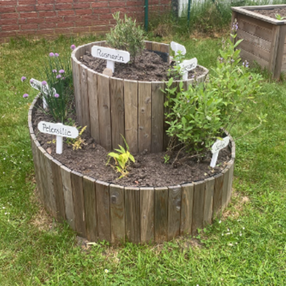 Wir haben jedoch auch einen besonderen Lernort, der immer weiter ausgebaut wird. Im grünen Klassenzimmer entdecken und forschen Kinder unter pädagogischer Begleitung die Tier- und Pflanzenwelt. Natürlich geht es darum, Kräuter, Kartoffeln oder Erdbeeren zu pflanzen, diese beim Wachsen zu beobachten und dann zu ernten. Aber was krabbelt denn in der Erde und welche Tiere leben unter, auf und über unserem Außengelände? Im Jahresverlauf begleiten wir die Kinder im Entdecken ihrer Umwelt. Hierbei ist uns wichtig, eine Wertschätzung und Sensibilität für die Schöpfung Gottes zu vermitteln. So schließt sich der Kreis unserer besonderen Konzeption: Religion - Kneipp - Naturerfahrungen im grünen Klassenzimmer.