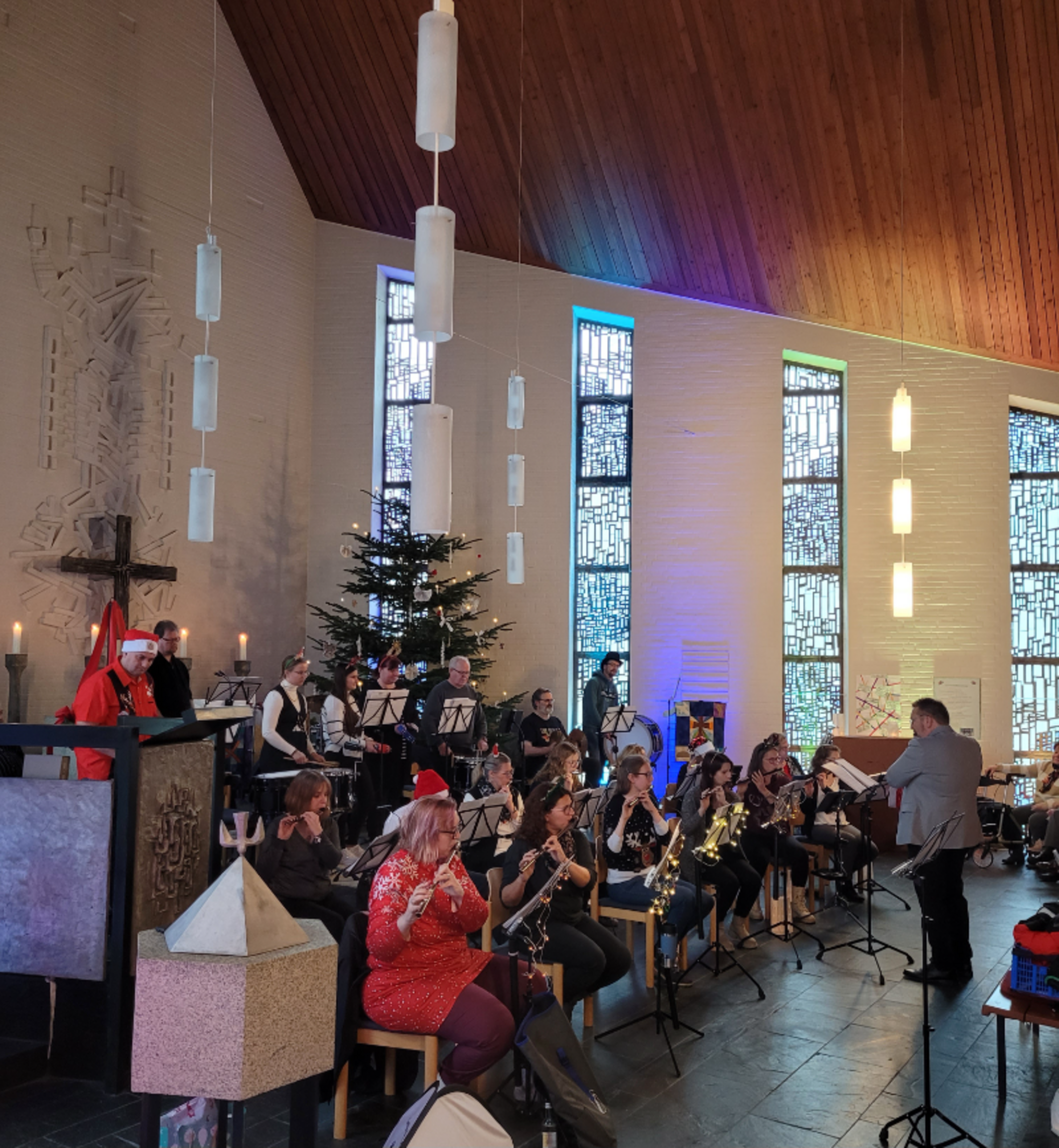 Am 20. Dezember 2025 lud das Spielleute-Orchester des TuSpo Surheide zum Weihnachtskonzert in die Auferstehungskirche ein. Über 120 Gäste folgten der Einladung und erlebten einen Nachmittag voller Musik, Emotionen und vorweihnachtlicher Stimmung. Das Programm bot eine gelungene Mischung aus bekannten Weihnachtsliedern und konzertanten Werken. Die Musikerinnen und Musiker überzeugten mit großer musikalischer Qualität, die das Ergebnis einer langen und intensiven Probenarbeit war. Die tolle Atmosphäre in der Kirche und der Applaus des Publikums spiegelten die Begeisterung der Zuhörerinnen und Zuhörer wider. Ein besonderer Höhepunkt des Abends war das Stück „Hallelujah“, das von der Sängerin Tetjana auf Ukrainisch begleitet wurde. Diese Darbietung berührte viele Gäste. In der Konzertpause lud ein großes Kuchenbüfett zum Verweilen ein. Bei Kaffee, Kuchen und auch Glühwein nutzten viele Gäste die Gelegenheit für Gespräche in geselliger Runde. Das Spielleute-Orchester bedankt sich herzlich beim Kirchenvorstand der Auferstehungskirche für die wertvolle Hilfe und Unterstützung bei der Durchführung des Konzerts. Aufgrund der durchweg positiven Resonanz ist man sich einig: Gerne soll es in diesem Jahr wieder ein Weihnachtskonzert geben.